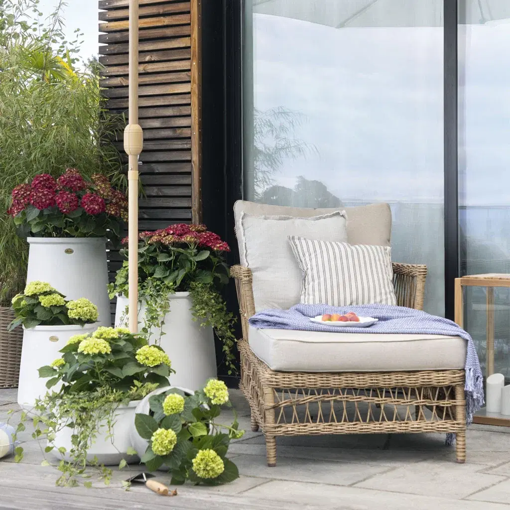 Når hagemøblene er valgt, er det på tide å sette prikken over i-en. Tenk interiør som du gjør det inne, også når du innreder ute. Planter, puter og pledd, tepper, lykter og lys kan løfte uterommet til nye høyder. Spør du oss, er selvsagt plantene spesielt viktige. Planter bringer ro og harmoni inn i uterommet, og tekstiler gjør det mykere og mer koselig. Detaljene får deg til å nyte de dyrebare utedagene enda mer, rett og slett.