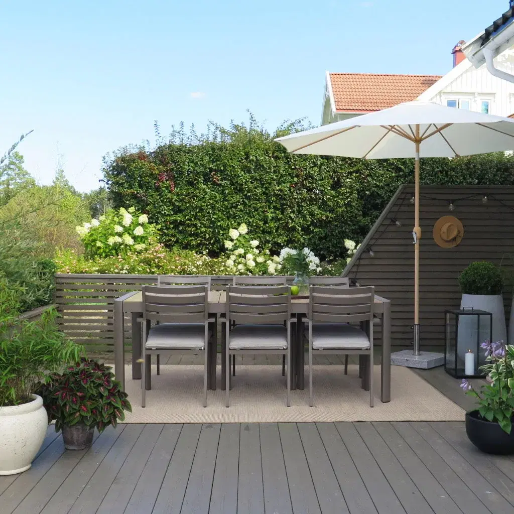 Forvandle uteområdet ditt med stilfulle og funksjonelle møbler fra serien Lysekil. Designet fokuserer på stramme, rene linjer, og møblene utstråler nordisk minimalisme. Disse tidløse og moderne utemøblene har rammeverk av lett og rustfritt aluminium, mens bordplatene er i nonwood. Begge materialer som gir et naturlig utseende og er vedlikeholdsfrie. Dette er det ideelle valget for deg som ønsker en stilren og praktisk løsning for din uteplass, med komfort og kvalitet som varer gjennom alle sesonger.