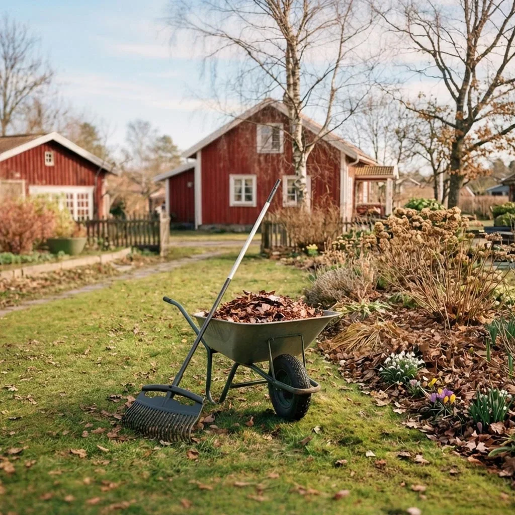 Rens bort gamle planterester og løv og hjelp plantene våkne til liv etter vinterhvilen. Med en god hekksaks og annet verktøy er det lett å gjøre det vårfint i hagen og på uteplassen. Litt løv og planterester kan med fordel ligge igjen mellom busker og stauder. Dette råtner og gir jorden næring og struktur. Samle alt du har ryddet i en kurv eller trillebår, og gjør gjerne en liten sortering før du legger det i komposten slik at forråtnelsesprosessen går raskere.