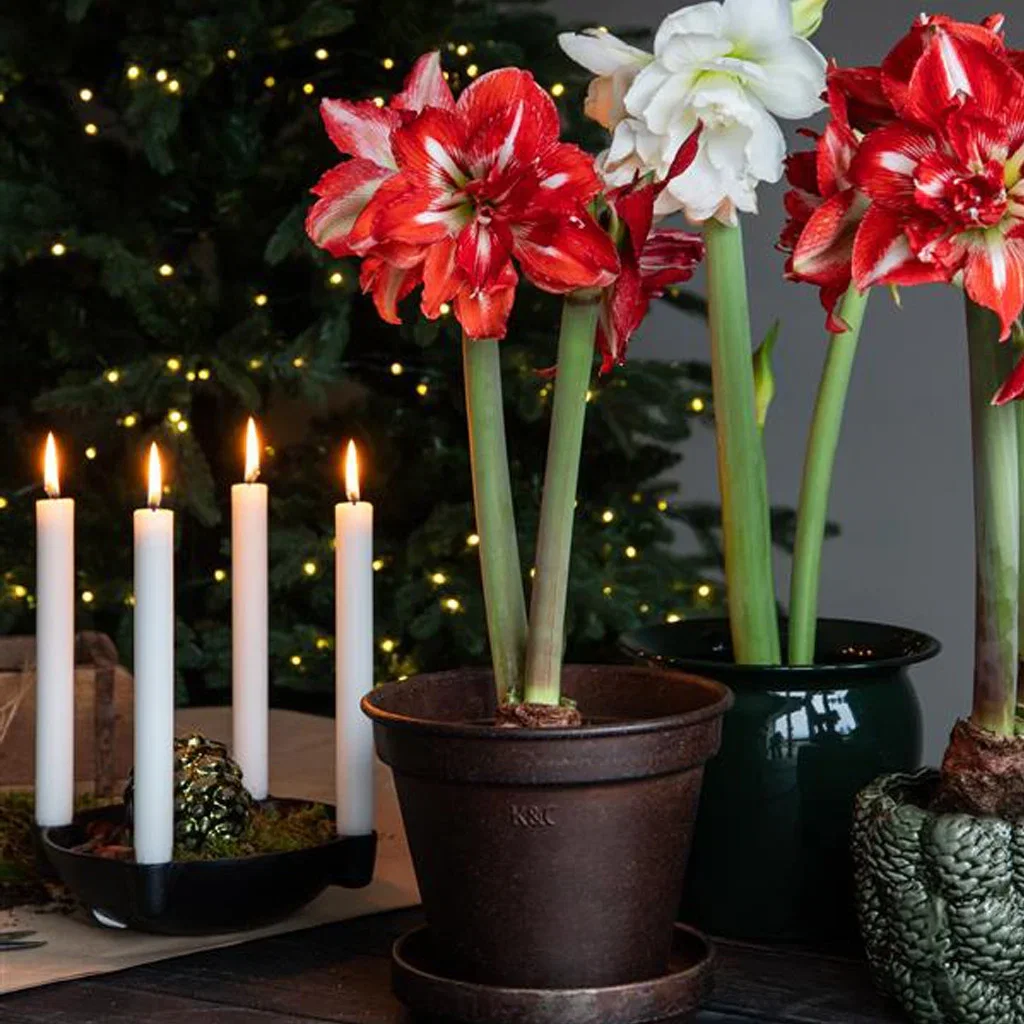 – Svibler og amaryllis kan klippes av og plasseres i glassvaser, perfekt til nyttårsbordet! Juleroser i små potter gir et delikat uttrykk både inne og i inngangspartiet dersom temperaturen tillater det, sier Hans Jensen.