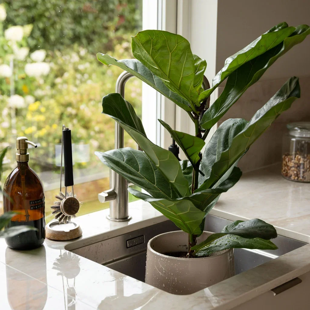 Trendy plante med fiolinformede blader. En vakker skjønnhet som ser ut som den er hentet rett fra et nordisk interiørmagasin.