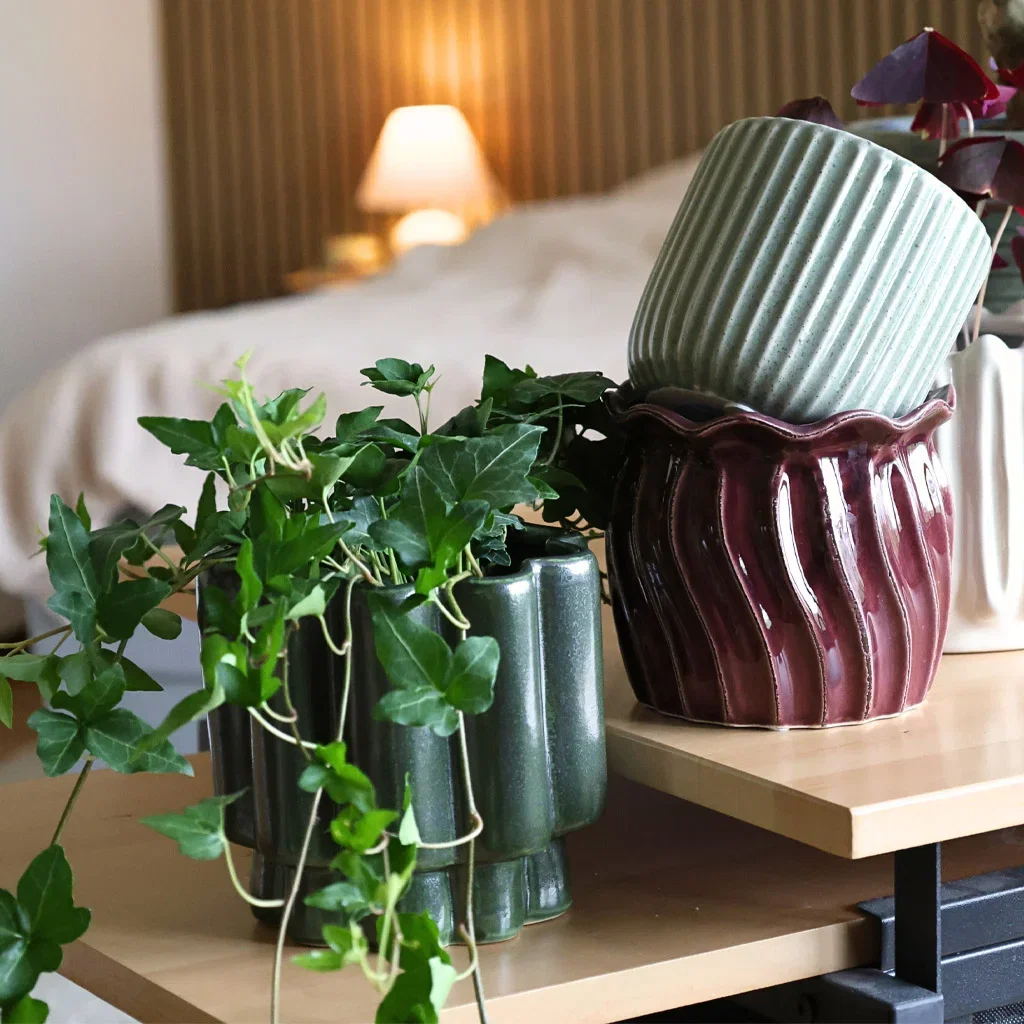 Form og farge forsterker ikke bare plantene dine, men gir også hjemmet et vakkert løft. Planter og potter er en enkel måte å skape et hjemmekoselig interiør på. Plasser potter i ulike materialer og størrelser i grupper for å få en avslappet oase av grønt. Bygg i høyden for å få plass til mer.