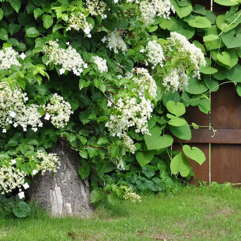Klatrehortensia er en robust og skyggetolerant klatreplante som kan fylle opp store områder. Den får vakre gylne blader om høsten og er hardfør opp til sone 4. En av våre mest imponerende klatrevekster i hvitt.