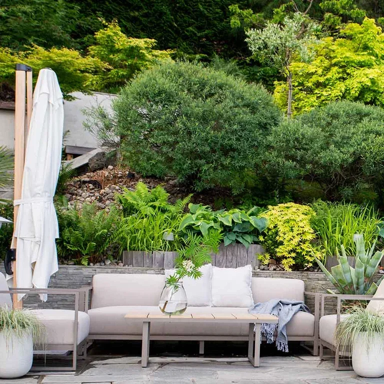 – Store potter og urner med planter i fungerer fint som avgrensing, gjerne med høye prydbusker bakerst og lavere planter foran. Flyttbare skillevegger er også fine rominndelere, og lyslenker gir en fin sonemarkering. Skillene bidrar til å gi uterommet et ryddig uttrykk og samtidig skape en lun og intim følelse.