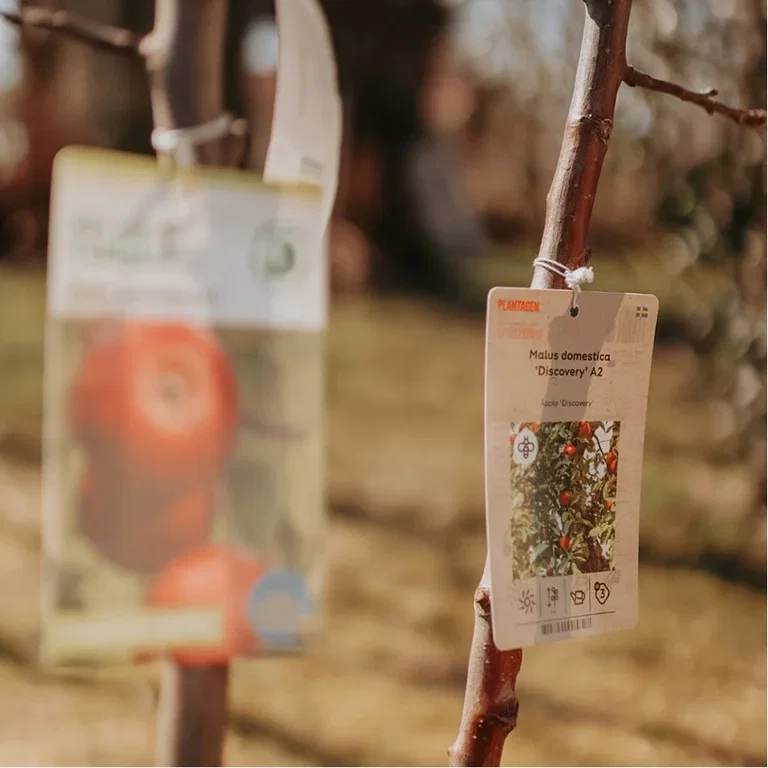 ‘Transparente Blanche’ på en Geneva 202®-stamme er en kraftigvoksende sort som blir til et riktig stort tre. Eplene modnes i august, med gulhvite frukter som ser nesten gjennomsiktige ut når de er helt modne. I begynnelsen er fruktkjøttet fast, men etter hvert blir det melne. ‘Transparente Blanche’ har en søt, syrlig smak, og du kan spise eplene rett fra treet. Den er også supergod å lage eplemos av. - Høsteple – ‘Gravensteiner’